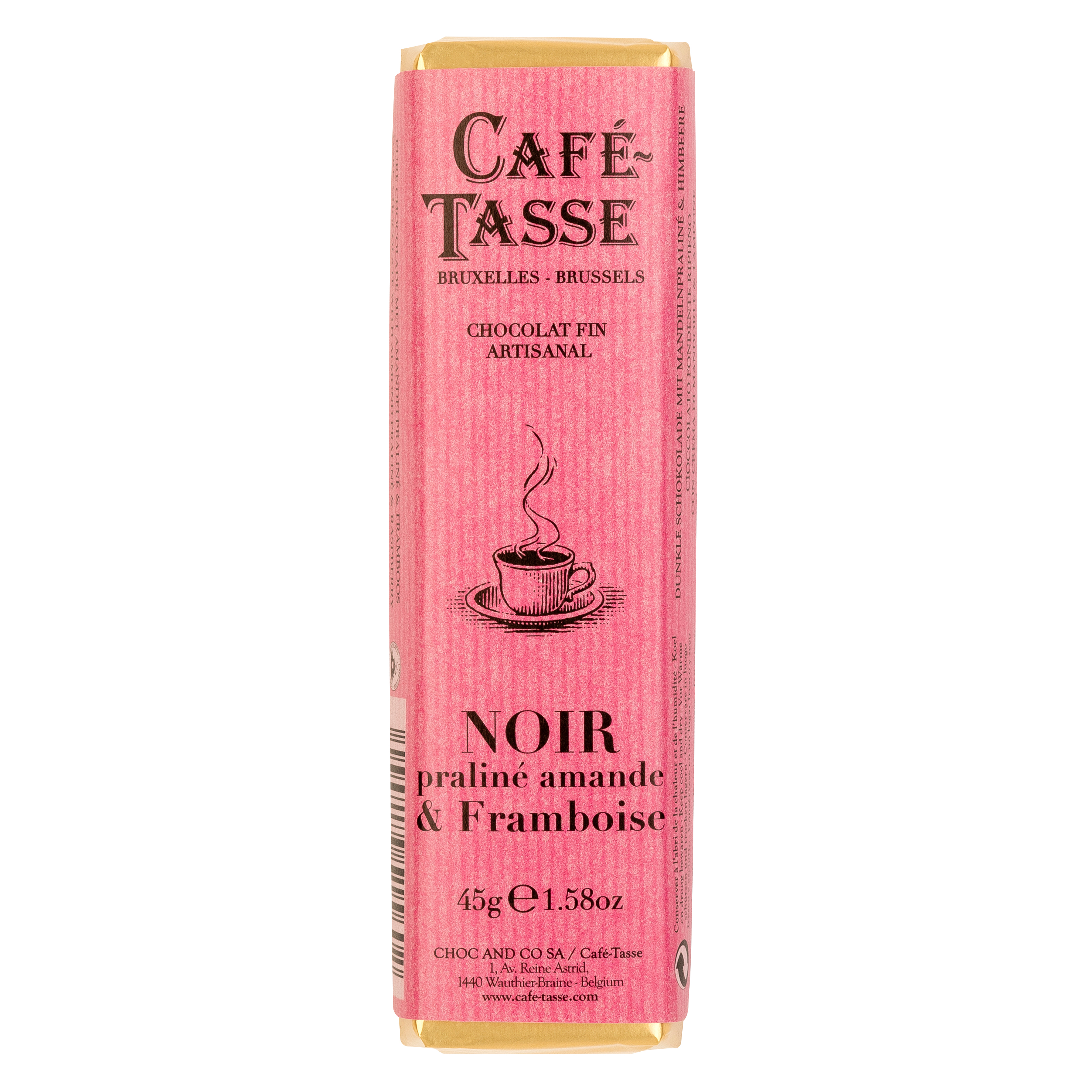 Eine unwiderstehliche Kombination aus Zartbitterschokolade (60 %), Mandelpraline und frischer Himbeere. Dieser Riegel vereint cremige Füllung mit fruchtiger Frische und ist im praktischen Verkaufsdisplay erhältlich.