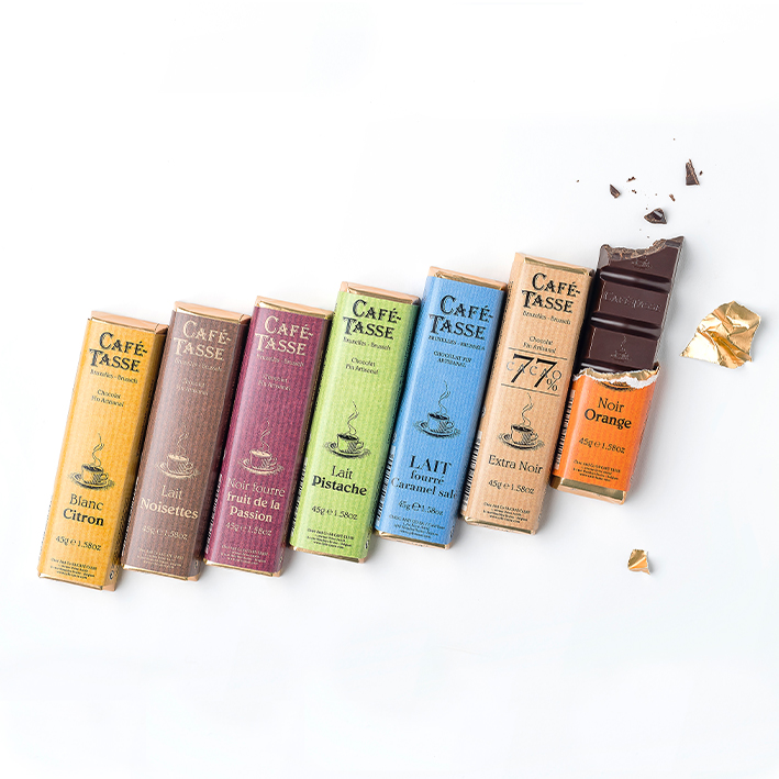 Dieser Riegel besteht aus purer Zartbitterschokolade (60 %) und einer fruchtig-frischen Passionsfruchtcreme. Erhältlich im praktischen Verkaufsdisplay, ist er die ideale Kombination für Liebhaber von intensiver Schokolade und exotischer Frucht.