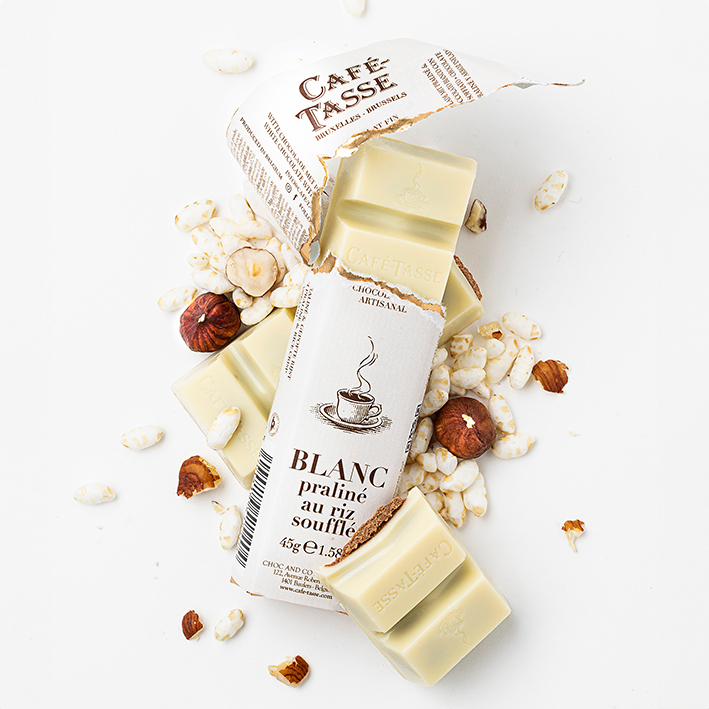 Genieße feinste weiße Schokolade, veredelt mit einer zartschmelzenden Pralinécreme und knusprigem Puffreis. Diese edle Kreation vereint cremige Süße mit einem feinen Crunch – ein himmlischer Genuss für alle, die das Besondere und das Feinste im Leben zu schätzen wissen.