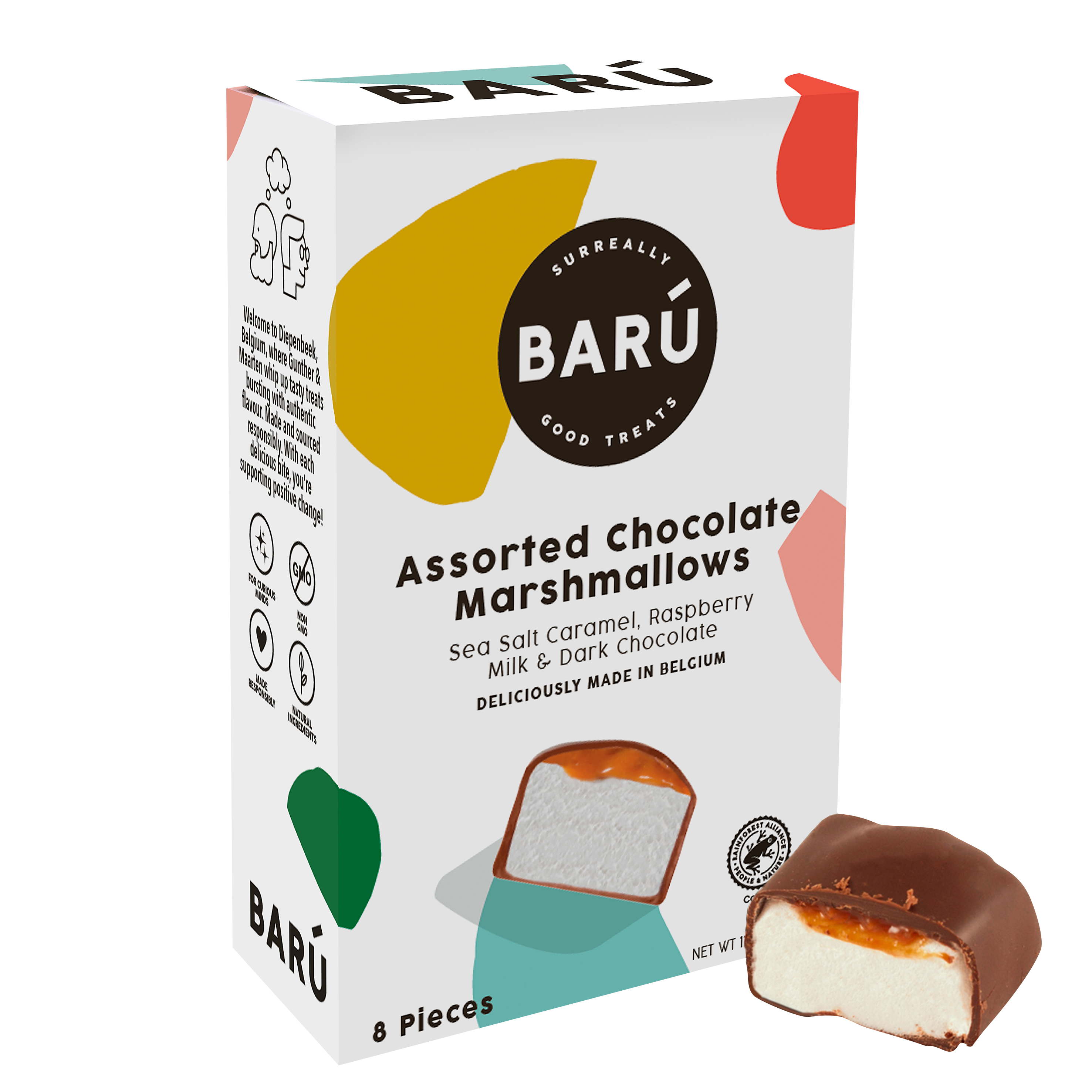 Die gemischte Packung enthält eine köstliche Auswahl von vier schokolierten Marshmallows: Milch, Zartbitter, Meersalz-Karamell und Kaffee-Ganache. Jede Variante bietet ein einzigartiges Geschmackserlebnis, das die zarte Konsistenz des Marshmallows perfekt mit den intensiven Noten der Schokolade verbindet. Ideal als süßer Snack oder als Geschenk für Schokoladenliebhaber.