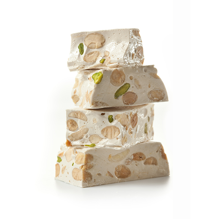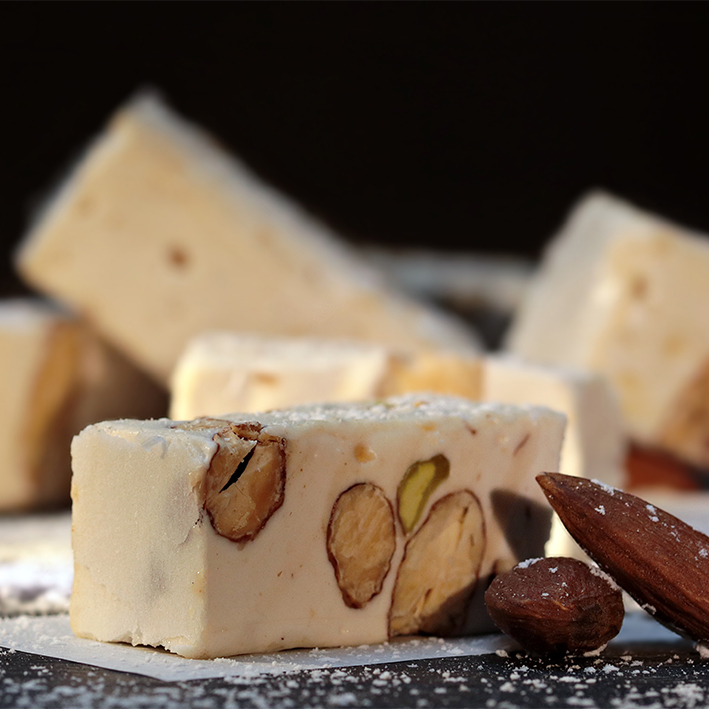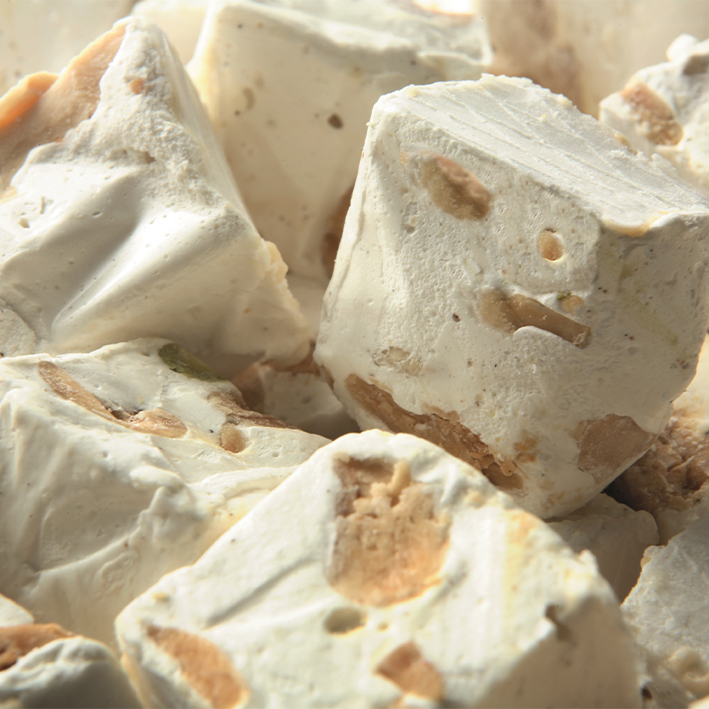 Dieser weiche französische Nougat mit 15 % Mandeln und Honig stammt aus der berühmten Region Montélimar und wird von Nougat Chabert & Guillot hergestellt. Ein zarter, süßer Genuss, der die Aromen der Mandeln und des Honigs perfekt zur Geltung bringt.
