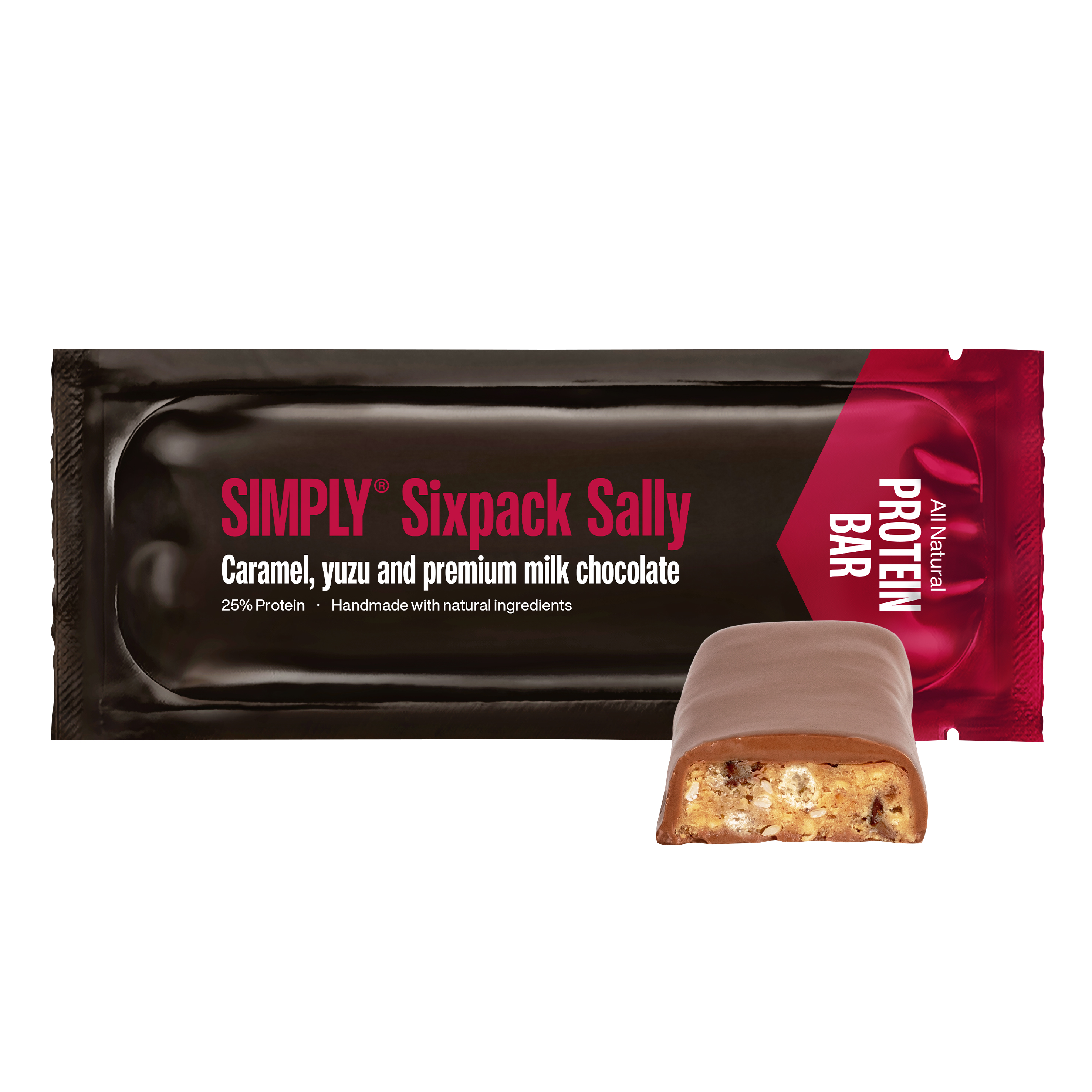 Stay energized with Sixpack Sally! This delicious protein bar offers an unparalleled blend of crunchy caramel, exotic yuzu, and roasted sesame seeds, all covered in the finest milk chocolate. With 27 g of protein per bar, it is the ideal companion for athletes and connoisseurs who are mindful of a balanced diet. Whether as a post-workout snack or a treat between meals, Sixpack Sally not only provides valuable energy, but also an intense flavor that leaves you wanting more. The perfect snack for anyone who cares about their fitness.