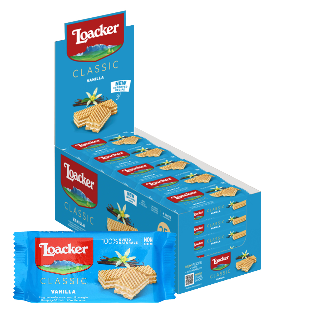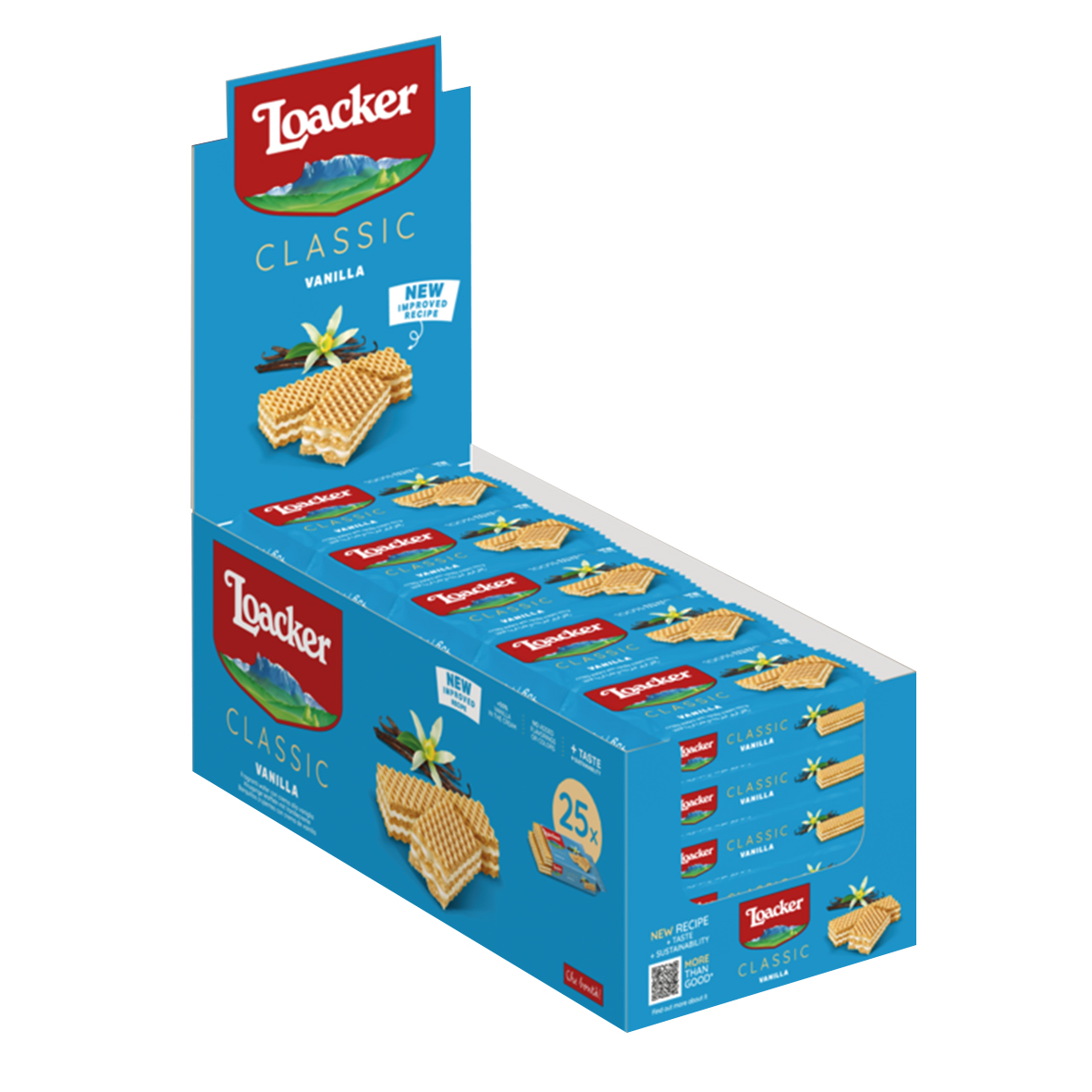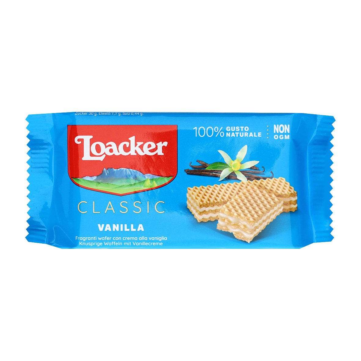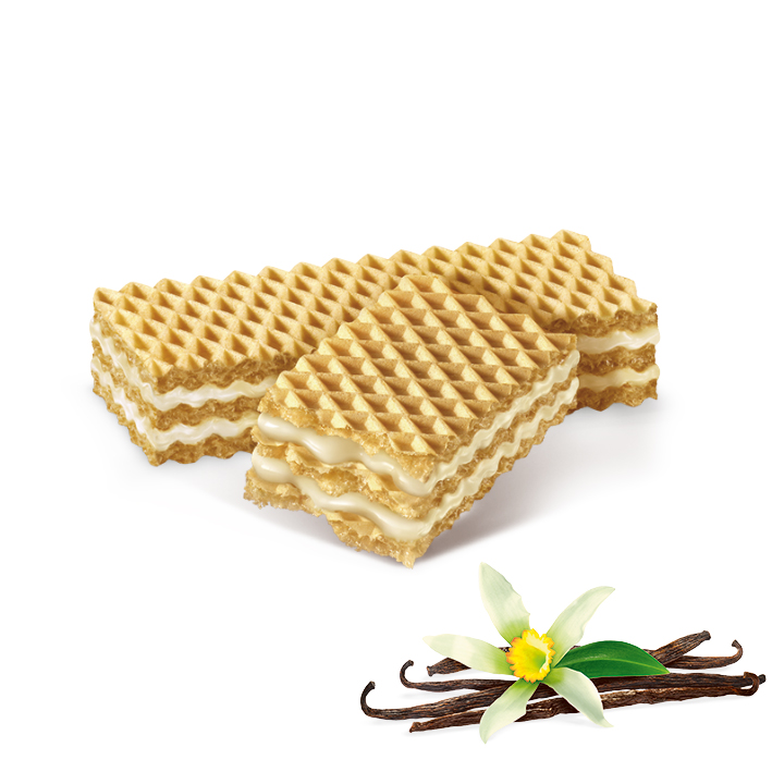 The deliciously crispy waffles are an irresistible snack between meals. This 45 g wafer is filled with a delicious vanilla cream, which ensures a sweet and creamy experience with every bite. The combination of the crispy wafer and the delicate vanilla cream makes this snack particularly versatile - whether as a quick treat on the go or as a sweet break with a cup of coffee.