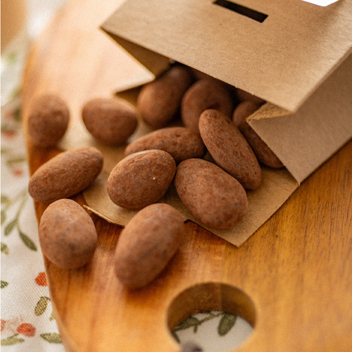 Caramelized almonds coated in fine praline chocolate and dusted with pure cocoa make these little treats an incomparable delight. These pralines are perfect for anyone who loves the taste of sweet nuts and rich chocolate. A real treat for special moments.