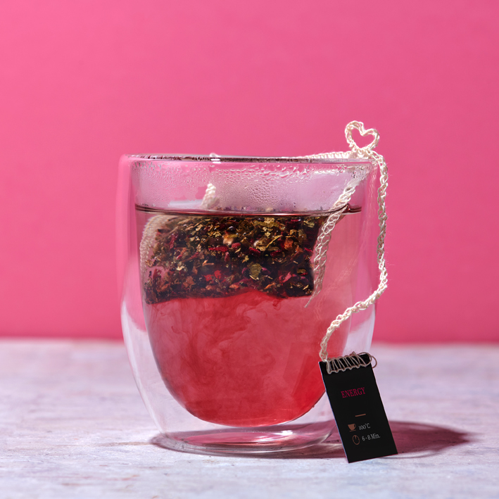 This wellness tea combines the fruity aromas of elderberries and hibiscus with the natural taste of cherries. A fruity, light tea that offers refreshing relaxation.