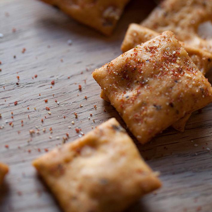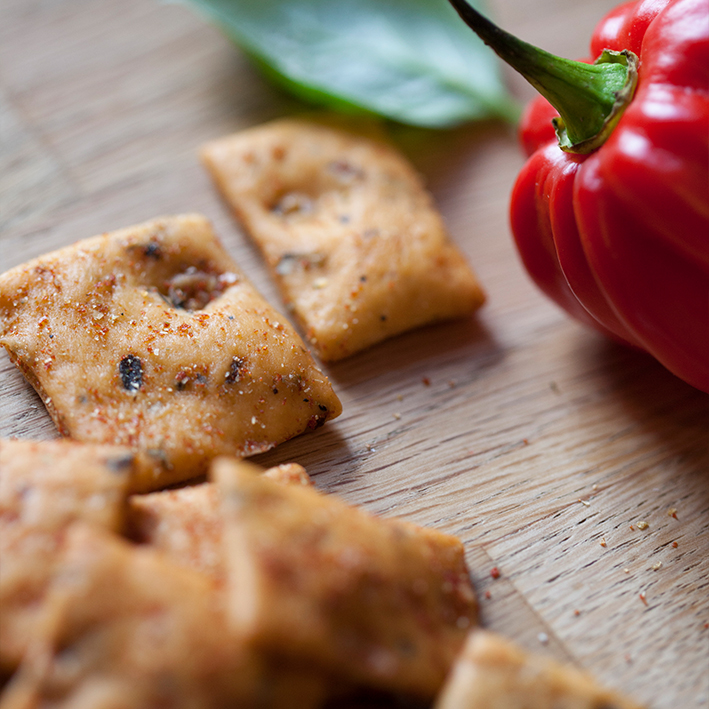 Finest savory pastries made from durum wheat semolina, refined with olive oil, aromatic spices and herbs. They are not deep-fried, but baked until crispy and delicately seasoned with tomato and oregano. A Mediterranean snack for in between meals.
