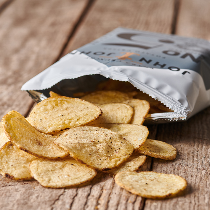 The exceptional John & John Crisps stand for top quality and unrivalled enjoyment. Extra crispy and particularly tasty, they are gently vacuum-fried. Refined with a harmonious blend of exotic and regional spices, our crisps are completely free from artificial additives and preservatives. They are also GMO-free and gluten-free. This is our ‘Natural Promise’ - natural, special, good. John Farmer prepares the world's best crisps from his selected potatoes: