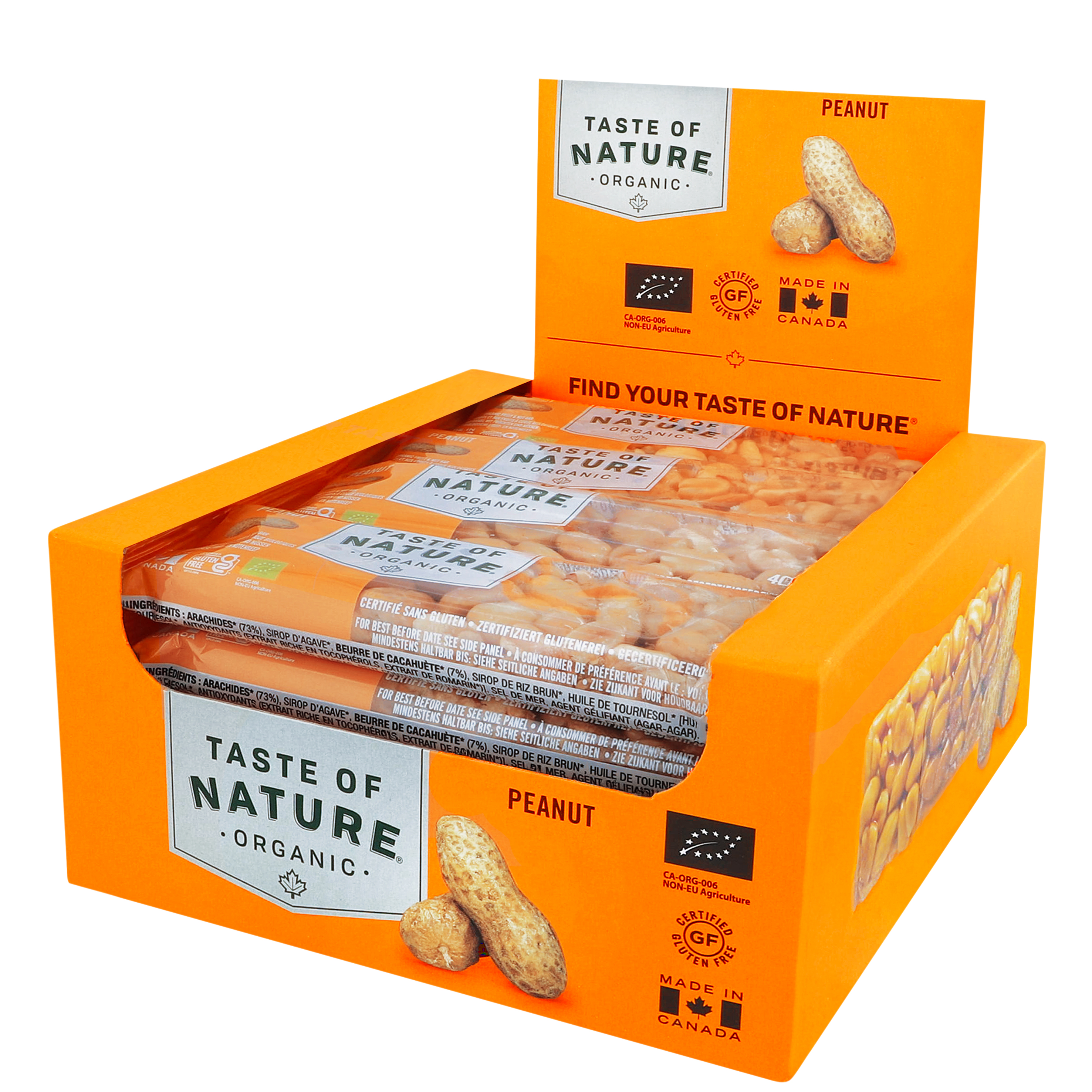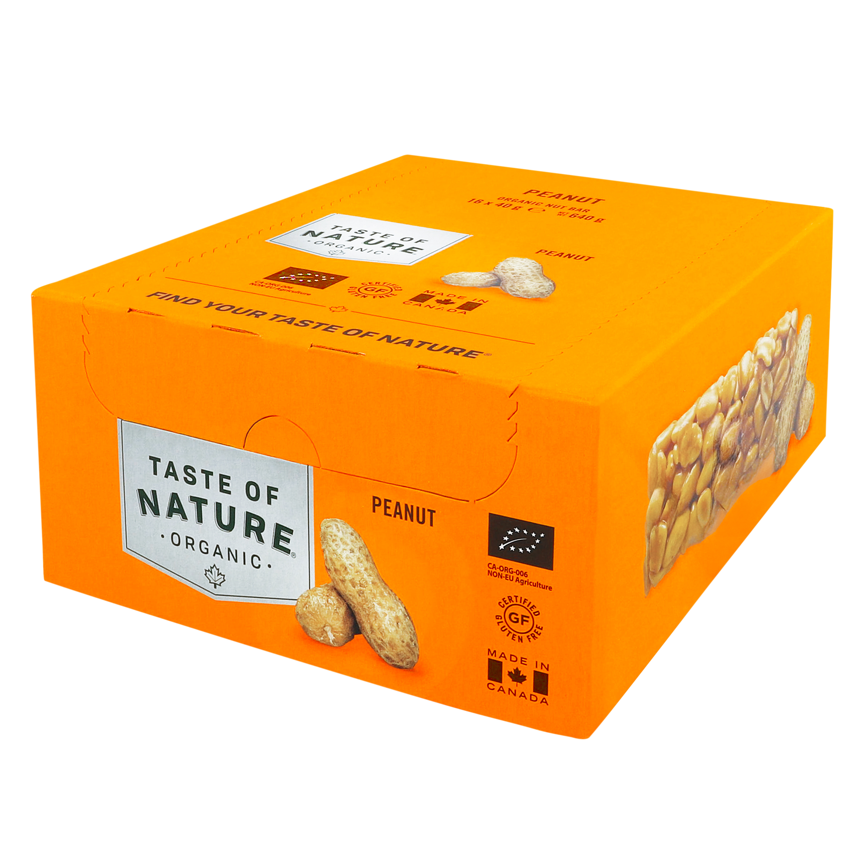 These delicious bars consist of 73% crunchy peanuts and are additionally sweetened with agave syrup and rice syrup, which gives them a pleasant sweetness. The bars are packaged in a practical display and are perfect as a nutritious snack on the go or as a little energy boost between meals. A must for all peanut lovers! Organic Certification No.: CA-ORG-006