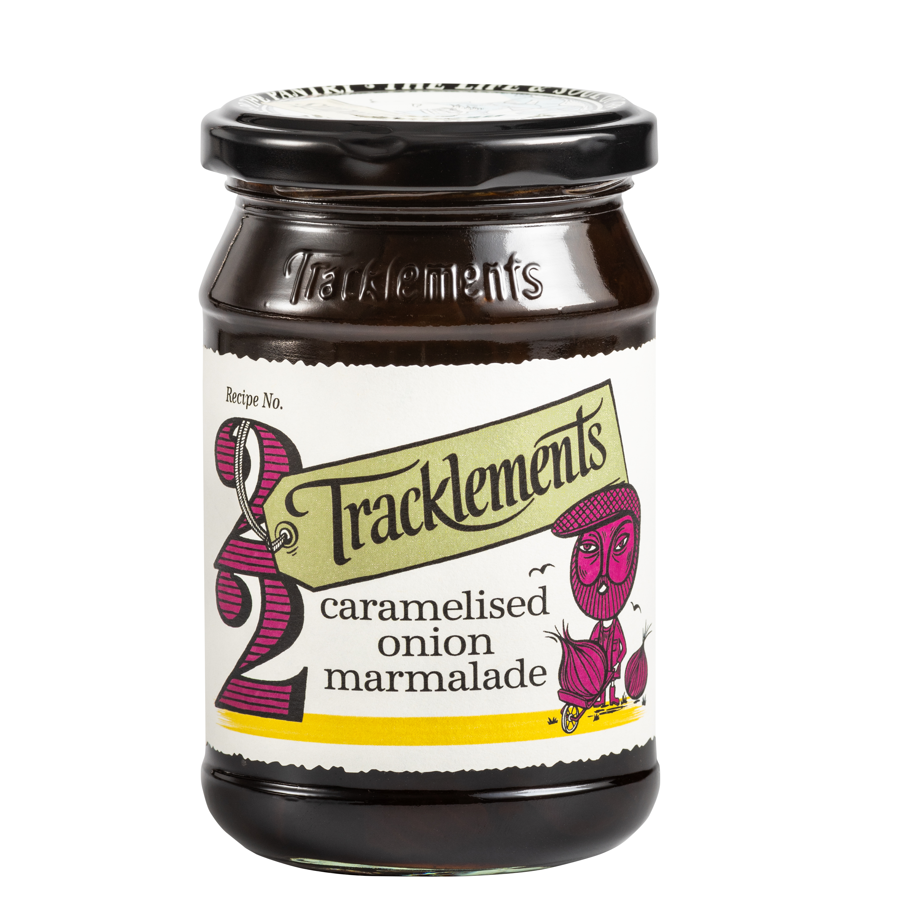 onions (46%) (origin: EU and Non-EU), raw cane sugar, cider vinegar, concentrated redcurrant juice, sunflower oil, gelling agent: citrus pectin, concentrated lemon juice, cinnamon, cloves, ginger.