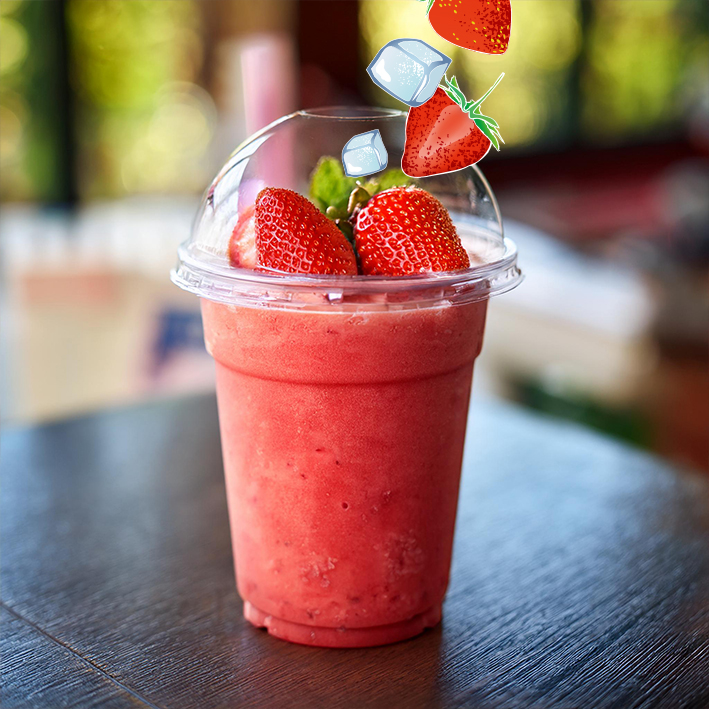 (For 0.36 l) Mix 160 ml (5.4 oz) strawberry-fruit preparation with 160 g ice cubes.