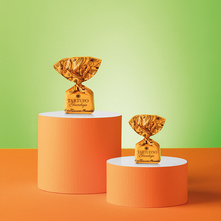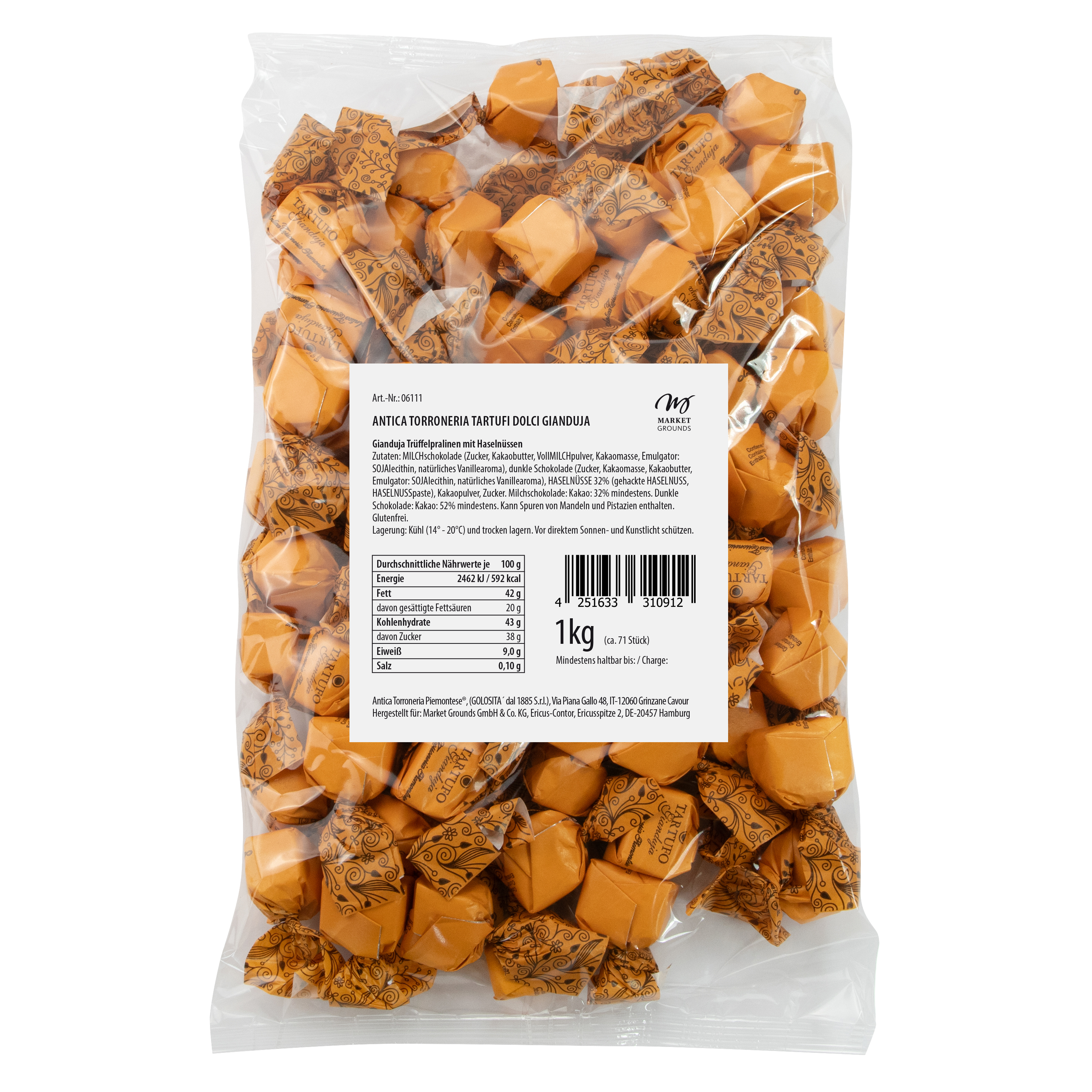 This dark truffle praline contains Gianduja chocolate and impresses with the full flavor of hazelnuts. The perfect balance between nutty richness and the intense bitterness of dark chocolate makes this praline an exquisite moment of indulgence not to be missed.