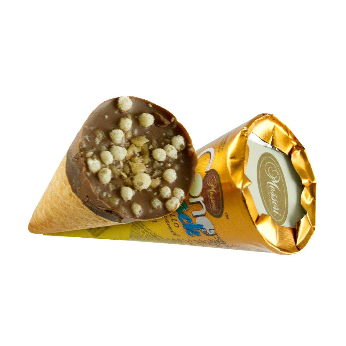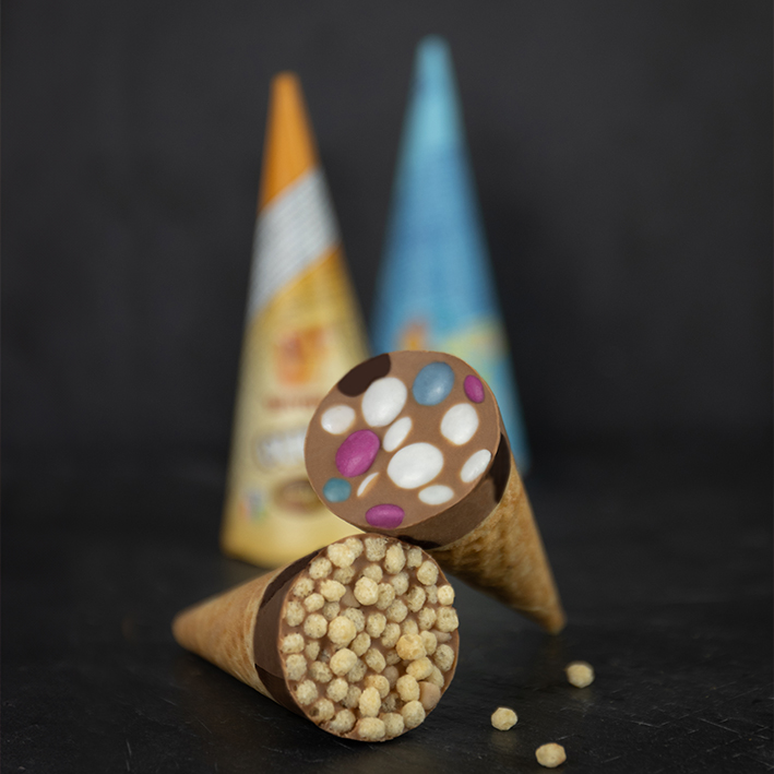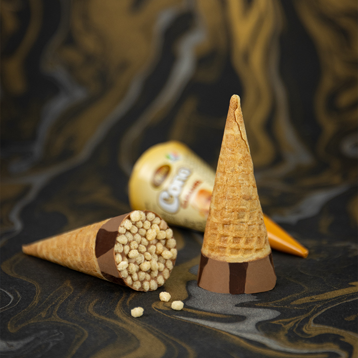 A crispy wafer croissant filled with cocoa, caramel cream and caramel pieces - finished with a decorative layer of puffed rice. This cookie combines crunchy textures and delicate fillings to create an unforgettable taste experience. Perfect as a sweet snack between meals or as a special highlight on the coffee table.
