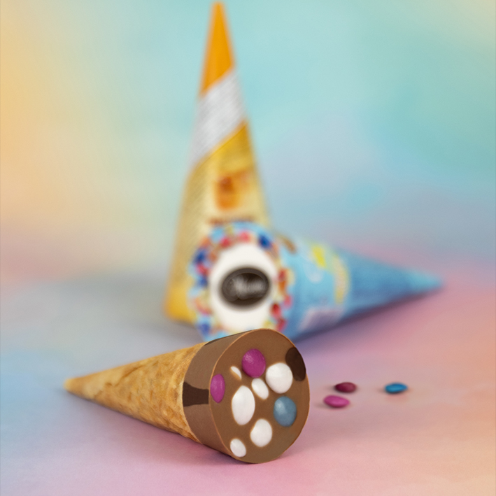 This crispy wafer croissant delights with a filling of fine hazelnut cream, delicate cocoa paste and colorful chocolate lentils, which provide the perfect crunchy fun. Each bite combines creamy chocolate with the crunchy texture of the wafer croissant. A treat for young and old, ideal as a snack on the go or as a sweet accompaniment to coffee.