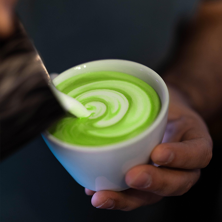 Stir a teaspoon (approx. 5 - 7g) of the matcha mixture into 200 ml of hot, frothed milk or plant-based drink.
