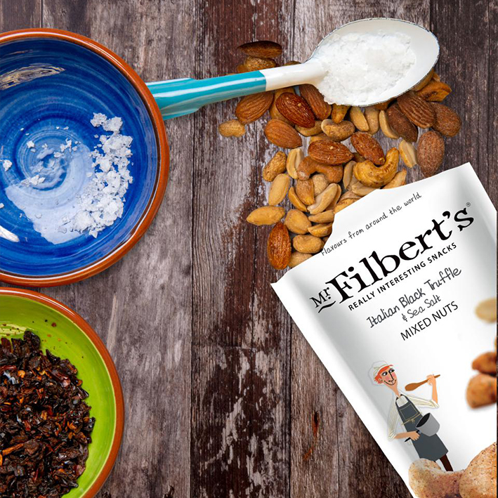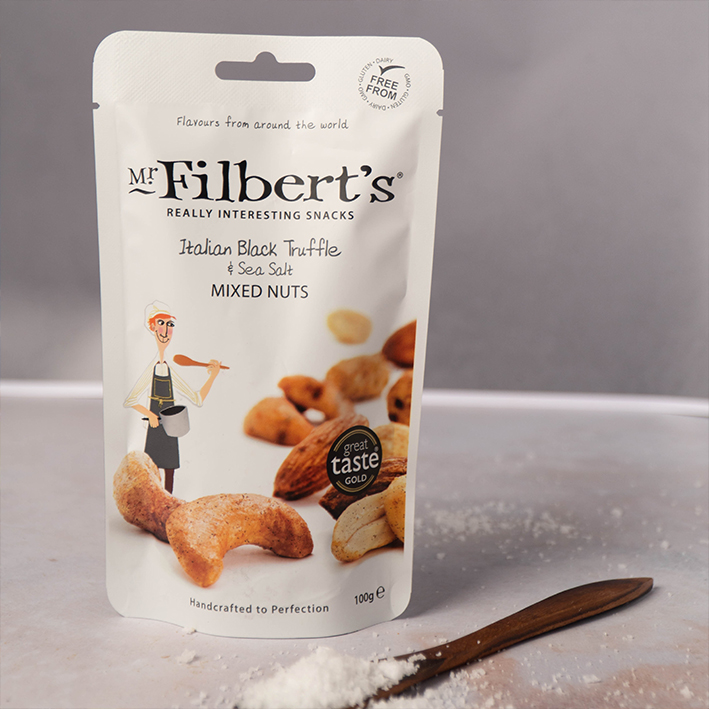 Geröstete Nüsse in Kombination mit schwarzem italienischem Trüffel und Meersalz bieten einen einzigartigen, preisgekrönten Snack. Der erdige Geschmack des Trüffels harmoniert perfekt mit den knackigen Nüssen.