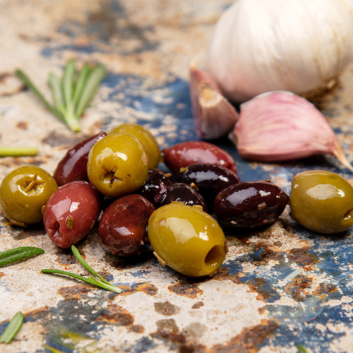 Chalkidiki- und Kalamata-Oliven, die 100 % natürlich sind und mit Rosmarin und Knoblauch mariniert wurden, bieten ein authentisches mediterranes Geschmackserlebnis. Diese Oliven, die entsteint, ölfrei und sofort verzehrfertig sind, passen hervorragend zu einer Vielzahl von Gerichten oder als Snack zwischendurch. Sie bringen das Aroma Griechenlands direkt auf den Tisch und eignen sich ideal für Tapas-Abende, Salate oder einfach pur. Ihre knackige Textur und der intensive Geschmack machen sie zu einem Muss für alle Olivenliebhaber.