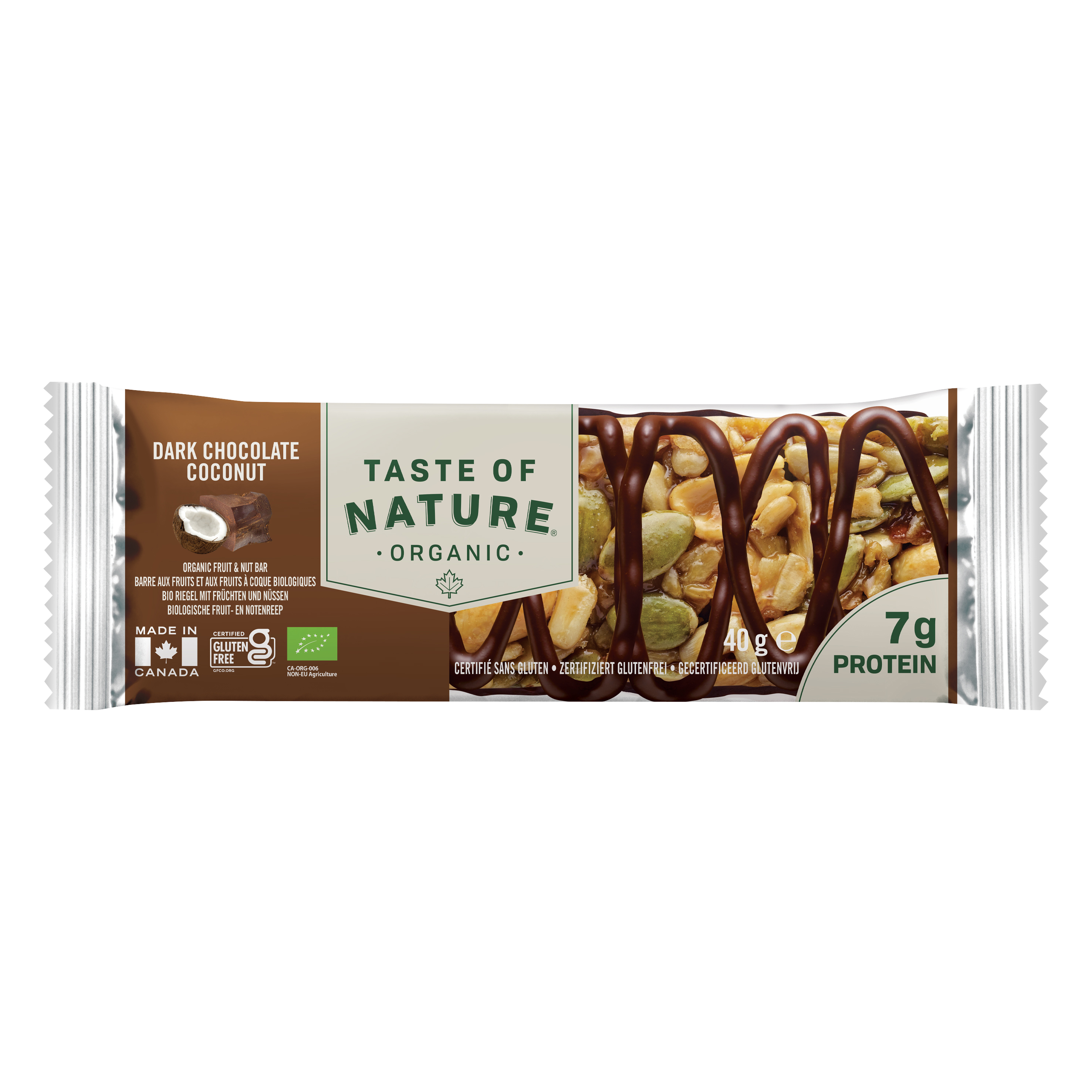 Geröstete Kokosnuss trifft auf Erdnüsse, Kürbiskerne, Pintobohnen-Flakes und Sonnenblumenkerne in diesem köstlichen, proteinhaltigen Riegel. Ein nahrhafter Snack, verfeinert mit Melasse und Schokolade, der durch seinen intensiven Geschmack überzeugt. Perfekt für den kleinen Hunger unterwegs und praktisch verpackt in einem Display. Bio-Kontrollstellennr.: CA-ORG-006