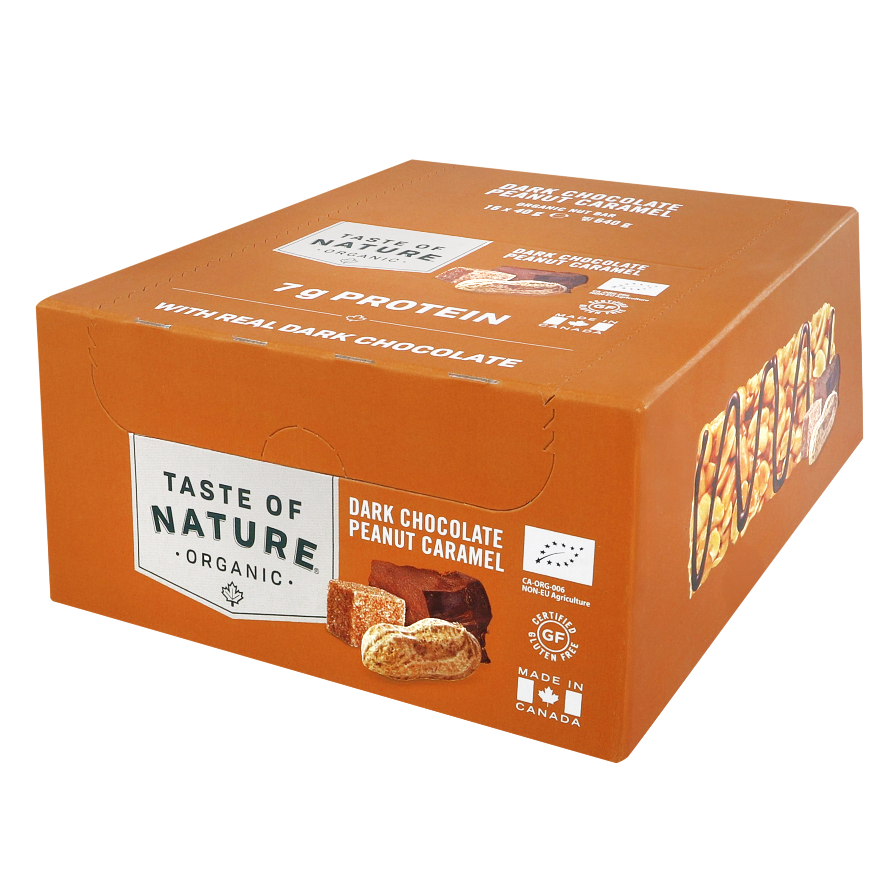 Proteinhaltiger Riegel (7 g) mit jeder Menge knackiger Erdnüsse, kombiniert mit Pintobohnen-Flakes und einer feinen Karamellnote. Mit Melasse und Schokolade verfeinert, sind die Riegel in einem Display verpackt. Bio-Kontrollstellennr.: CA-ORG-006
