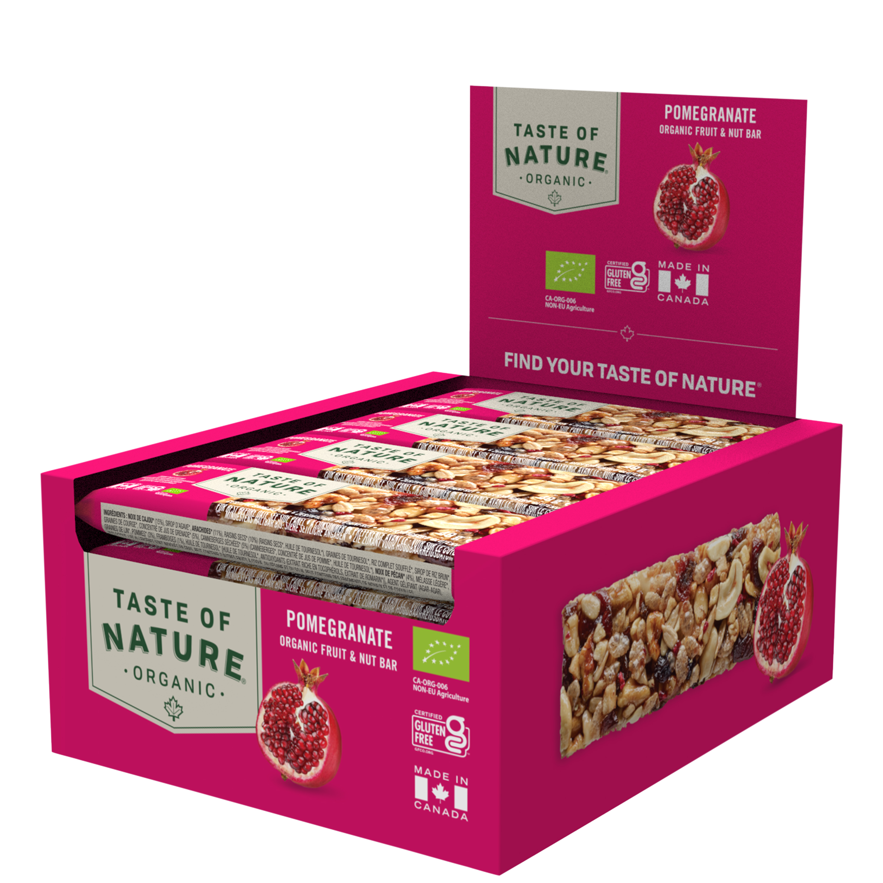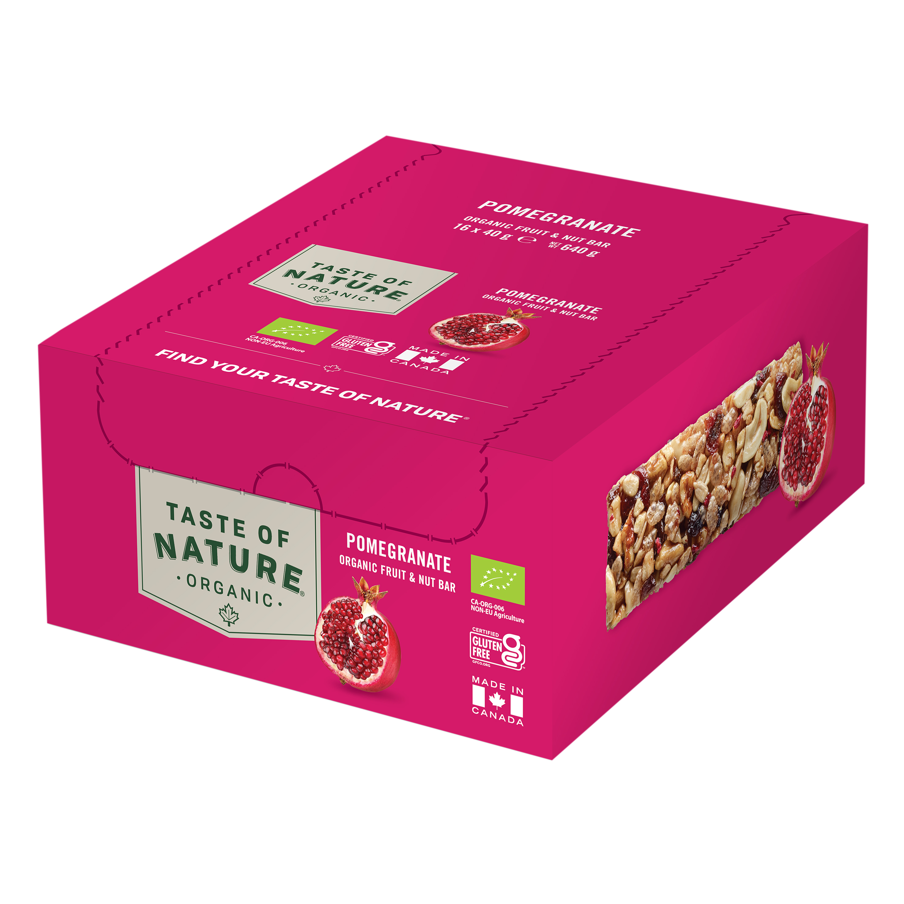 CASHEW-NÜSSE* (15 %), Agavensirup*, ERDNÜSSE* (11 %), Rosinen* (10 %) (Rosinen*, Sonnenblumenöl*), Sonnenblumenkerne*, Vollkorn-Puffreis*, brauner Reissirup*, Kürbiskerne*, Granatapfelkonzentrat* (5 %), getrocknete Cranberries* (5 %) (Cranberries*, Apfelsaftkonzentrat*, Sonnenblumenöl*), PEKANÜSSE (4 %), helle Melasse*, Leinsamen*, Äpfel* (3 %), Himbeeren (1%)*, Sonnenblumenölmischung* (Sonnenblumenöl*, Antioxidationsmittel: tocopherolhaltiger Extrakt (E306), Rosmarinextrakt*), Geliermittel: Agar-Agar (E406). *Aus kontrolliert biologischem Anbau.