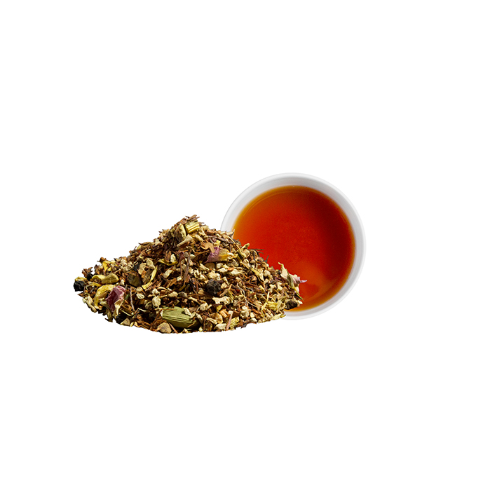 Ingwer* (36 %), Rooibos*, Zimt* (8,5 %), Süßholzwurzel*, Schwarzer Pfeffer* (4,5 %), Zitronenöl*, Kardamomschote* (2 %), natürliches Bourbon Vanillearoma, Gewürznelkenöl. *Aus kontrolliert biologischem Anbau. Ursprung Ingwer: Nicht-EU.