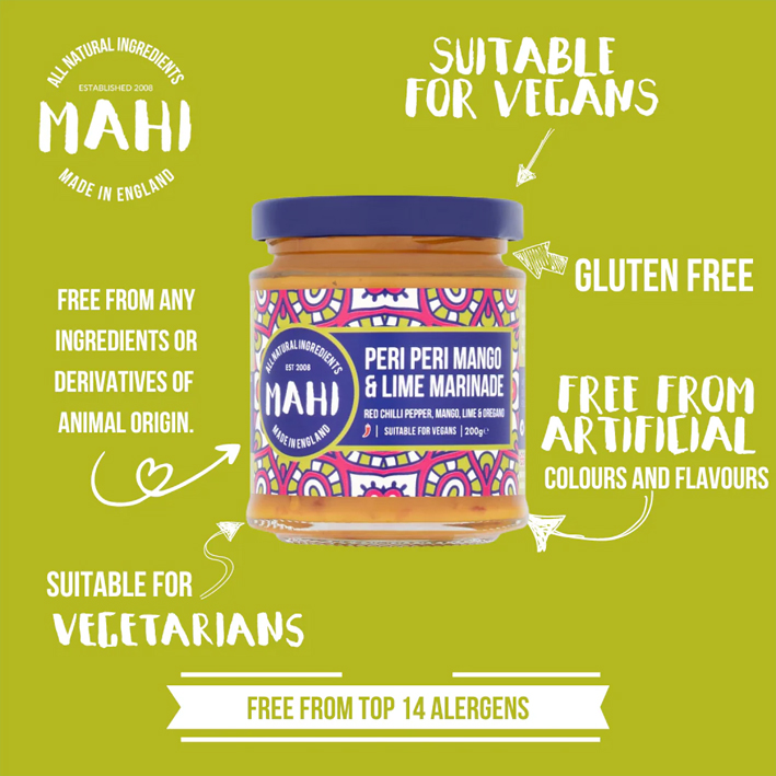 Diese Peri Peri Mango & Lime Marinade sprüht förmlich vor frischen, leuchtenden Aromen. Der süße Nektar der Mango wird durch eine Prise Schärfe und einen erfrischenden Spritzer Limette perfekt ergänzt. Diese Marinade verleiht jedem Gericht einen köstlich exotischen Akzent und macht jedes Essen zu einem unvergesslichen Geschmackserlebnis. Ideal für Sommergrills und exotische Gerichte.