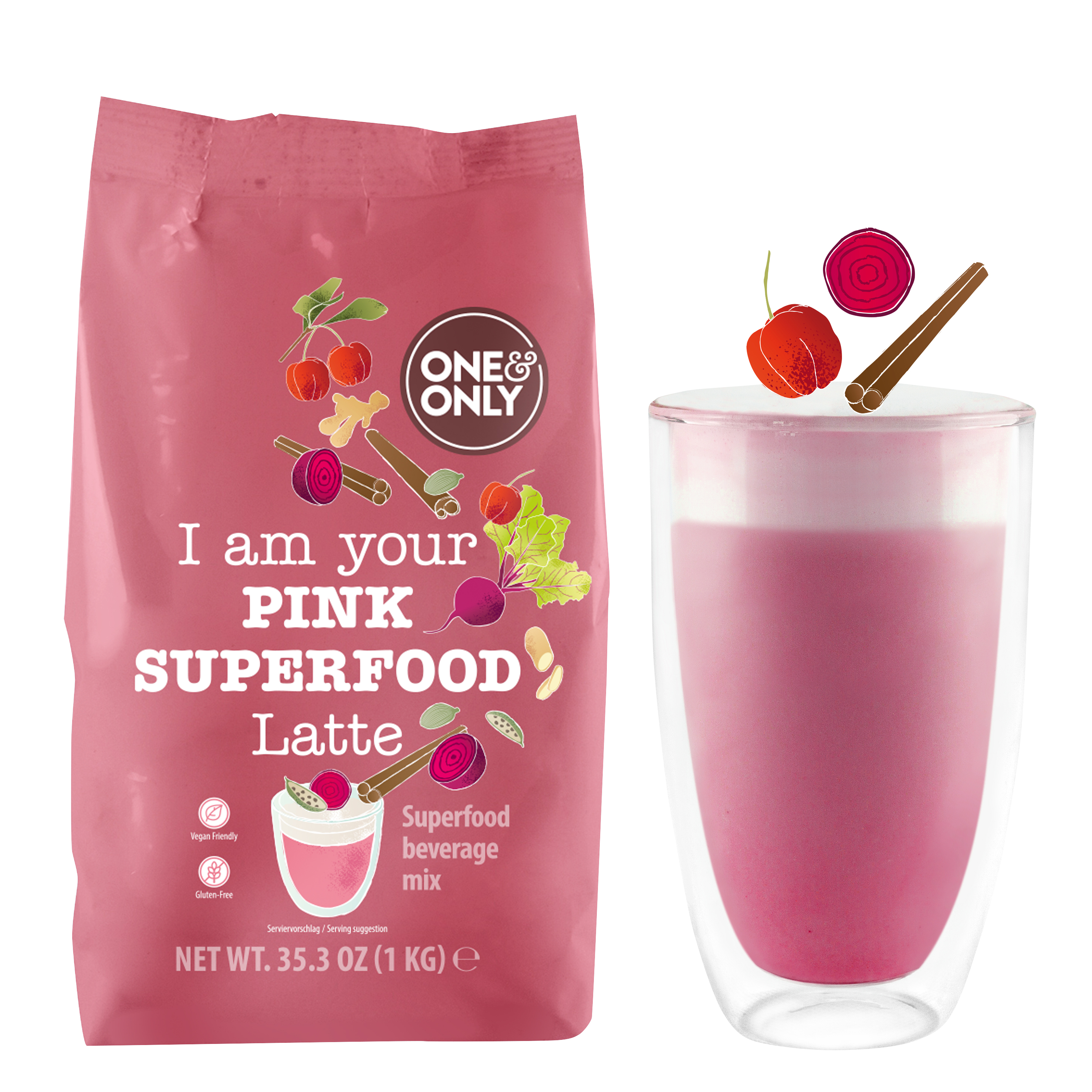 Der Pink Superfood Latte von One&Only bringt Farbe und Geschmack in Ihre Tasse! Die einzigartige Mischung aus roter Bete, natürlichem Zimtaroma und ausgewählten Gewürzen bietet ein belebendes, wohlschmeckendes Getränk für Genießer und Gesundheitsbewusste. Speziell für Vollautomaten mit frischer Milch entwickelt, überzeugt dieser vegane Mix durch einfache Zubereitung und cremige Konsistenz. Genießen Sie die perfekte Balance aus würzigem Aroma und natürlicher Süße – ideal für den täglichen Genuss und besondere Momente!
