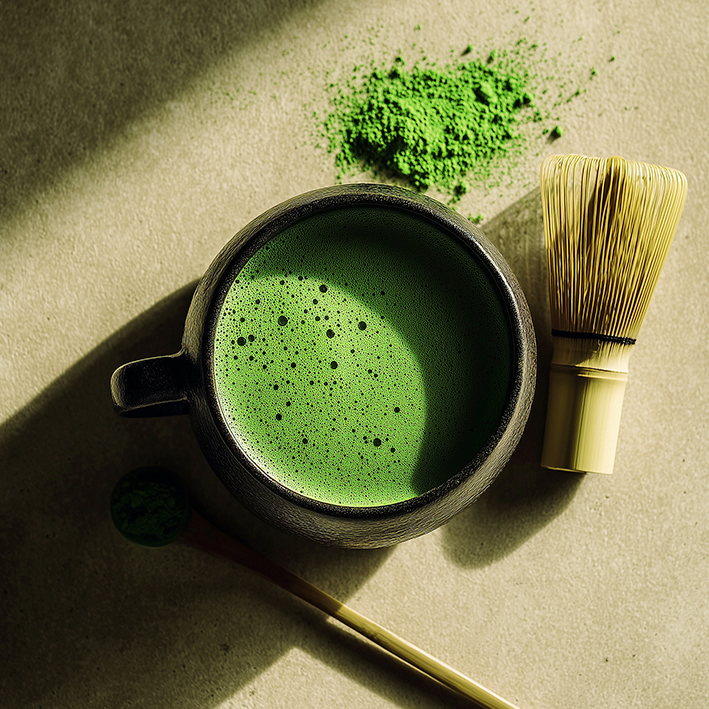 Mit 70–80 °C heißem Wasser aufgießen und einem traditionellen Bambusbesen schaumig schlagen. Verwendung von 1,5 g Matcha Pulver pro Portion.