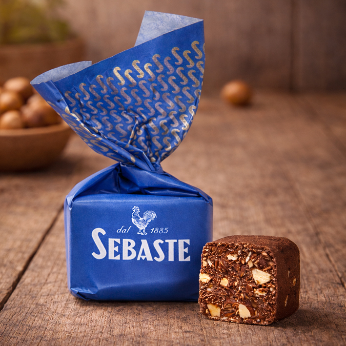 Diese dunkle Trüffelpraline ist mit gehacktem weißem Nougat veredelt, der ihr eine besonders zart-schmelzende Textur verleiht. Die Kombination aus der intensiven dunklen Schokolade und dem nussigen Haselnussaroma schafft ein harmonisches Geschmackserlebnis, das auf der Zunge zergeht. Perfekt für Liebhaber feinster Pralinenkunst, die sich nach einem außergewöhnlichen Genuss sehnen.